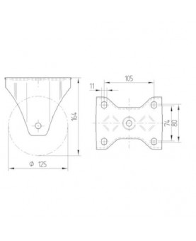 Roulette fixe, Chape en acier embouti zingué bleu, axe de roue boulonné., Fixation à platine.