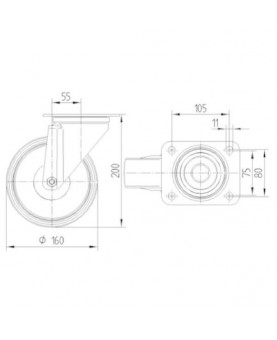 Réf. 3477UAR160P63105,75 €Roue polyuréthane pivotante.