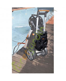 A l'aide du caisson fourni, le tuyau peut non seulement être enroulé et déroulé de façon pratique, mais aussi rangé directement sur le nettoyeur pour gagner de la place.