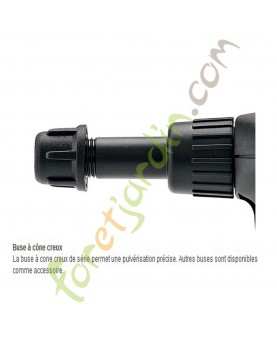 Composé de deux buses à jet plat et de deux buses à cônes creux pour toute la gamme de SG. La buse à jet plat convient parfaitement au traitement des surfaces, la buse à cône creux au traitement individuel des plantes.